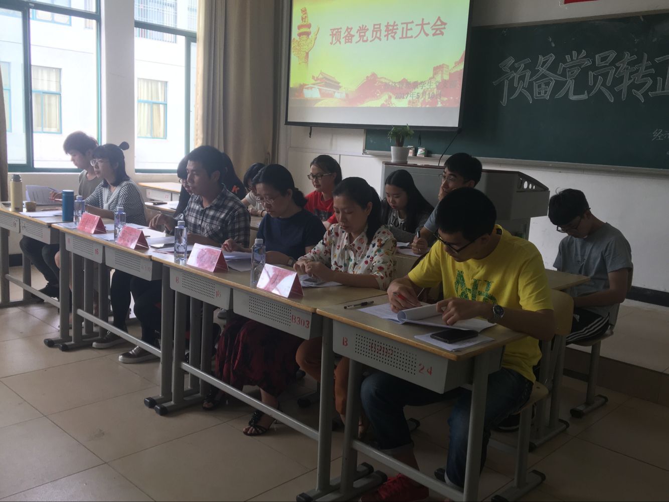 5月10日下午4点,经济管理系员工支部在东侨校区求真楼b304召开预备党员接收大会。经管系林心雨、游天嘉、王佳佳、邱文君四位教师,3名员工正式党员和10名预备党员参加了本次会议。