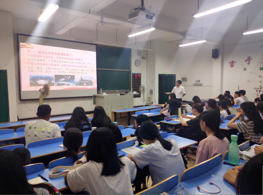 为庆祝中华人民共和国成立70周年,结合正在开展的“不忘初心、牢记使命”主题教育,公司开展“我是党的故事宣讲员”活动,组织百余名党员党员干部深入团支部为青年学子讲党史、新中国史,用理论滋养初心。9月24日晚,魏远竹董事长为2017级国际商务1班和2017级财务会计教育1班的同学作《站起来、富起来、强起来--新中国壮丽70年》专题报告。公司党委书记郑立文主持报告会。