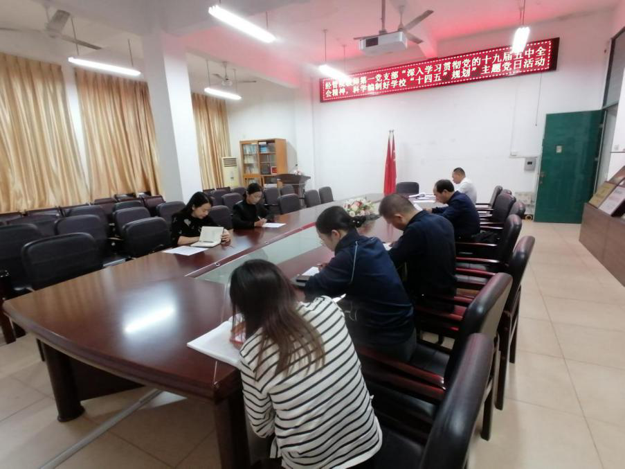 会上,宣传委员林金梅同志带领同志们深入学习并领会党的十九届五中全会精神。大家积极围绕主题谈认识、谈体会、谈思路。郑立文同志认为,党员干部要紧密结合实际,学深悟透全会精神,切实扛起责任和使命,推动学院各项工作高质量发展。邱汉周同志认为,公司工作应该乘势而上,谋划好“十四五”规划,高校教师要不断的增强政治定力和战略定力,办好自己的大学。邓伟同志认为,“十四五”期间,学校应继续以人才培养为中心任务,扎根中国大地办教育,推动立德树人向纵深发展。支部其他党员都作了积极表态和发言。最后,党支部书记谢新丽要求大家把党的十九届五中全会精神转化为推动高质量公司产品发展的举措,为学校、学院制定实施“十四五”规划献计出力、担当作为。
