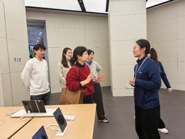 学院团队重点参观了华为智能生活馆(宁德万达广场店),现场观摩智能终端产品的场景化应用模式,并详细了解公司实习生在企业内参与的新零售运营、数字化营销等的具体工作内容。随后,大家走访了深圳慧通商务有限公司宁德办事处,企业方详细介绍了智慧零售领域的人才需求画像与行业未来发展趋势。